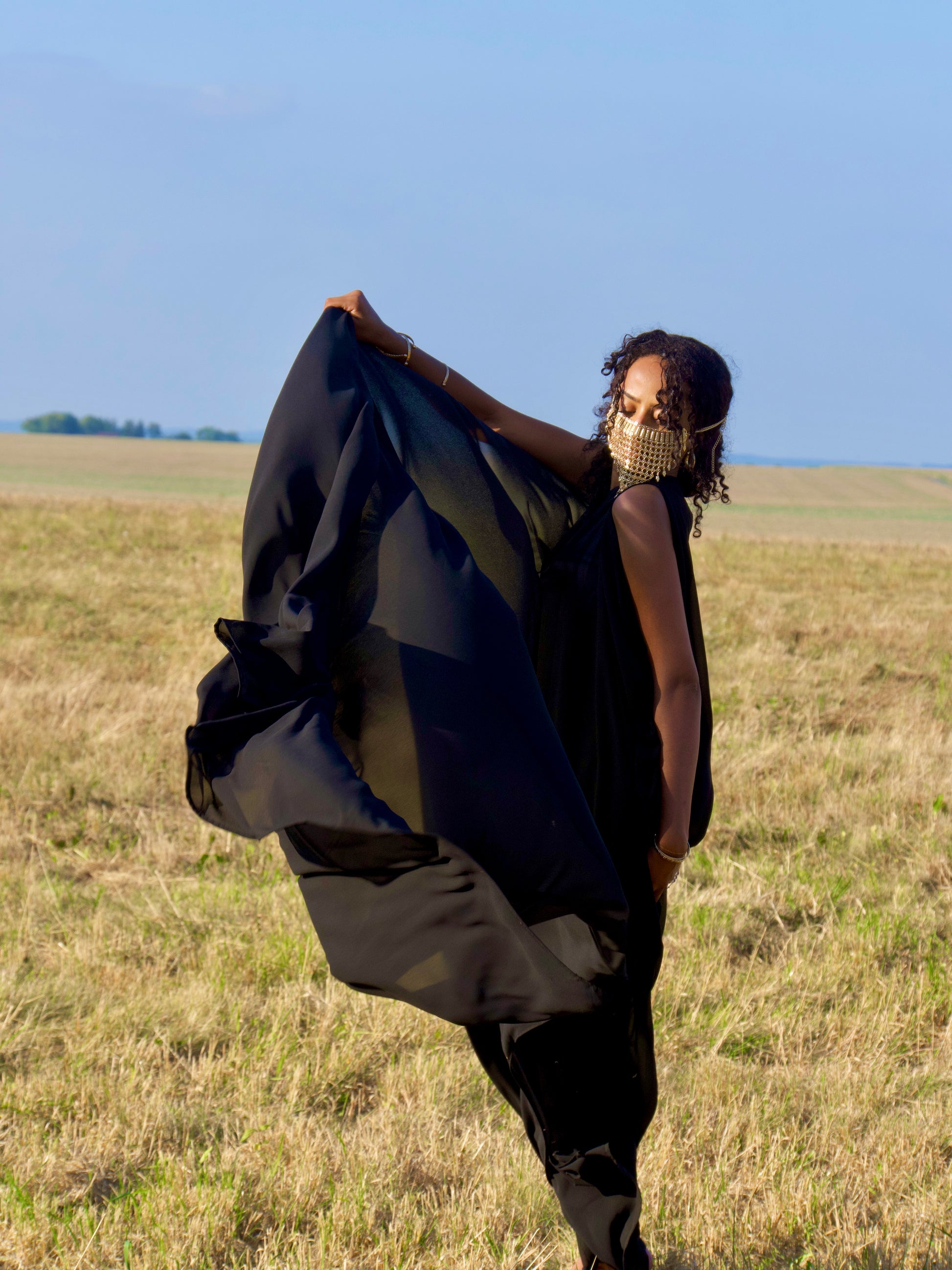 Khadija – Melfha cousue modernisée noire, tenue saharienne élégante